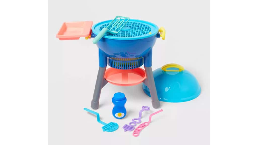 Dieser Seifenblasenmacher sieht aus wie ein Grill! Die Familien füllen die beiliegende Seifenblasenflüssigkeit ein und können dann beobachten, wie die Blasen aus dem Grill aufsteigen, als wäre es Dampf. Das Set enthält einen Grilldeckel und vier Seifenblasenstäbe, die von Spateln, Hamburgern und anderen grillbezogenen Formen inspiriert sind. Die Kinder können die Stäbe auf den seitlichen Tisch des Grills legen, so bleibt alles ordentlich. Dieses Spielzeug ist eine unterhaltsame und kreative Möglichkeit für die Familie, gemeinsam Zeit im Freien zu verbringen, während die Kinder ihre Fantasie und Feinmotorik entwickeln.