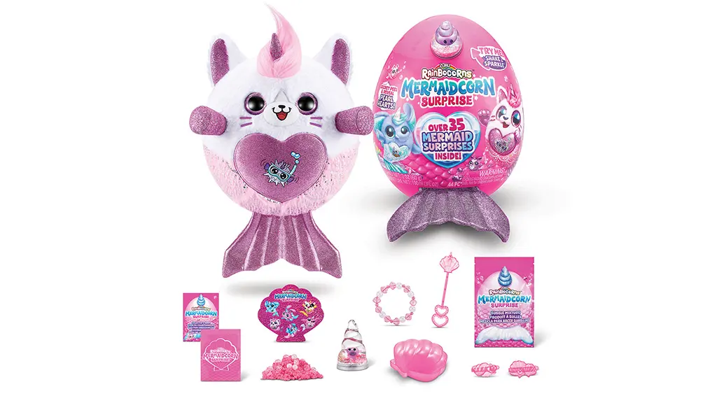 Kinder können aus einem Ei schlüpfen, um einen neuen Plüschfreund und mehr als 35 Überraschungen zu entdecken. Es gibt sechs verschiedene sammelbare Mermaidcorns, von denen jedes ein abziehbares Herz hat, das den Kindern zeigt, was ihr Mermaidcorn mag.