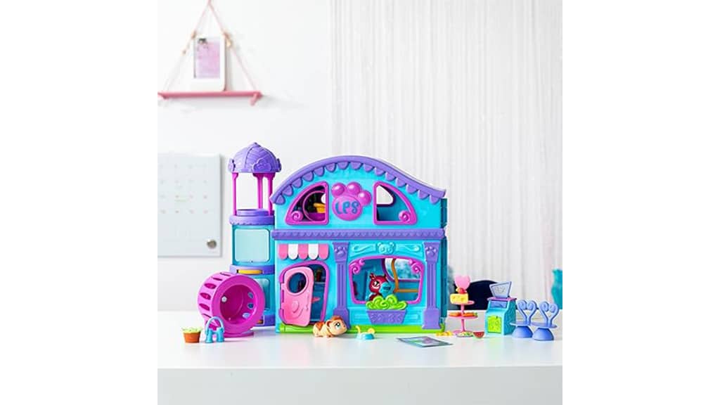 Basic Fun! Das neueste Littlest Pet Shop Spielset ist tragbar und bunt. Es enthält eine Pflegestation, einen Kratzbaum, ein Laufrad und ein Haustierbett. Die Haustiere können sich in einem drehbaren Aquarium oder Terrarium ausruhen. Das Set kommt mit zwei Haustieren: einem Hamster und einem exklusiven Capybara. Kinder können die im Spielset enthaltenen 20 Zubehörteile leicht verstauen. Außerdem enthält es eine Sammelkarte und bietet die Möglichkeit, mehr als fünf digitale Überraschungen online freizuschalten. Dieses Spielset ist nicht nur unterhaltsam, sondern fördert auch die Kreativität und Vorstellungskraft der Kinder, während sie verschiedene Geschichten mit den Haustieren erfinden. Die bunten und detailreichen Elemente helfen auch bei der Entwicklung der Feinmotorik.