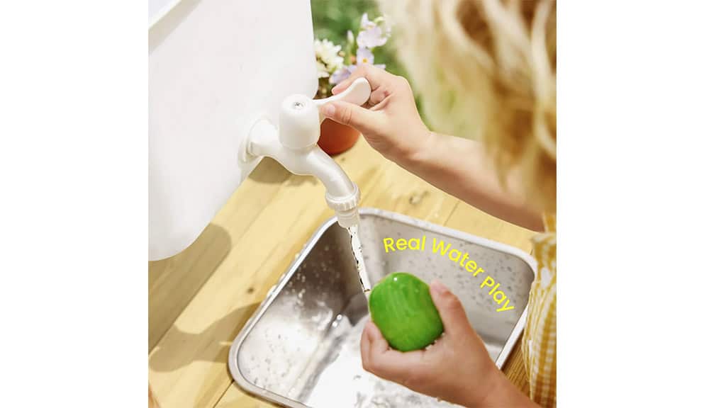 Ab sofort können Familien dieses Gartenbistro vorbestellen und so das besondere Erlebnis auch im eigenen Garten genießen! Die Lieferung der Spielküche beginnt am 8. Juni. Dieses fantastische Spielset bietet den Kindern nicht nur Unterhaltung, sondern fördert auch die Kreativität, die Vorstellungskraft und die sozialen Fähigkeiten. Es ist die perfekte Wahl für alle Familien, die möchten, dass ihr Kind draußen in einer sicheren Umgebung spielen, neue Freunde finden und unvergessliche Erlebnisse sammeln kann.Diese Outdoor-Spielküche ist mit allem ausgestattet, was Kinder brauchen, um meisterhafte Matschkuchen zuzubereiten. Sie enthält einen 2-Liter-Wassertank, einen funktionierenden Wasserhahn, Edelstahltöpfe und eine Mini-Gießkanne. Unter dem Herd verbirgt sich ein sensorischer Behälter, der noch mehr Möglichkeiten zum Mischen, Matschen und Planschen bietet. Auch das Aufräumen macht Spaß, denn der zweistufige Stauraum ist mit Haken versehen, sodass jedes Werkzeug seinen Platz hat und das Ordnung schaffen zu einem spielerischen Erlebnis wird. Diese Spielküche fördert nicht nur die Kreativität und die Fantasie, sondern auch die Feinmotorik, während die Kinder draußen spielen.