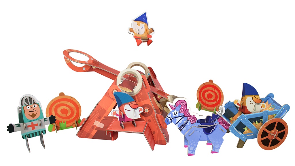 Dieses Bauset enthält eine Zwergen-Katapult, das wirklich funktioniert! Das Set enthält zwei Zwerge: "Fischstäbchen" und Snack Keks; einen Testzwerg (für den Windtest!); den Ewigen Ritter; und Cornelius, das mürrische Einhorn.