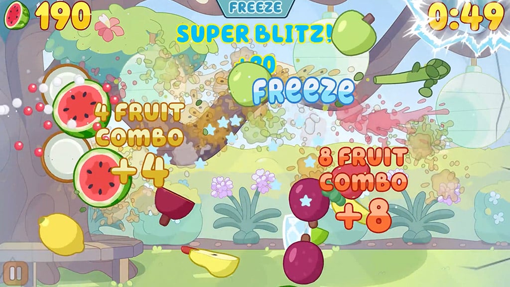Das Crossover erweitert das Spiel um vier neue, fruchtige Events, in denen beliebte Charaktere aus der beliebten Vorschulserie die Hauptrolle spielen. Die Kinder können als echte Meisterköche einen fein geschnittenen Obstsalat zubereiten, während sie geschickt dem Spargel ausweichen. Sie können Bluey dabei helfen, Gecky zu fangen, wenn dieser von der Decke fällt. Bingo und ihr Zauberstab versprechen ebenfalls spannende Abenteuer, und das schnelle Obstschneiden sorgt für noch mehr Spaß. Jedes einzelne Abenteuer ist gleichzeitig unterhaltsam und lecker, sodass die Kinder garantiert jeden Moment des Spiels genießen werden!