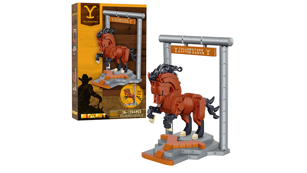 Die Yellowstone-Saga ist ein echtes Phänomen, und obwohl die Hauptserie am Ende der fünften Staffel letztes Jahr abgeschlossen wurde, setzt sich die Geschichte mit den Prequels 1883 und 1923 fort. Mindestens vier weitere Spin-offs sind in Aussicht, sodass Fans, die sich bis zur Premiere des nächsten Teils, The Madison, beschäftigen möchten, dieses majestätische Pferd bauen können. Dieses Pferd steht auf einem felsigen Sockel, der mit dem charakteristischen Yellowstone-Y verziert ist, und verfügt über einen beweglichen Schwanz und bewegliche Beine sowie einen Platz unter einem Yellowstone Dutton Ranch-Schild.