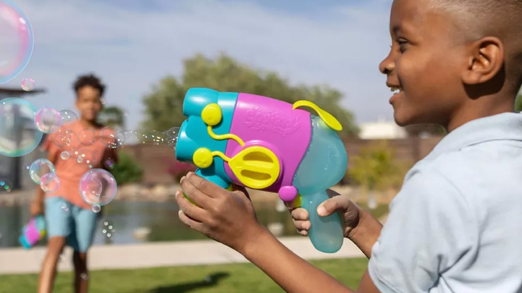 Quelle: Buffalo GamesDas Chuckle & Roar Squirty Squirts 2-in-1 elektrische Seifenblasen- und Wasserpistole lässt sich leicht mit Wasser und Seifenblasenlösung nachfüllen. Dieses Spielzeug ist die ideale Wahl für Kinder, da es gleichzeitig Unterhaltung und kreatives Spielerlebnis bietet. Dank der einfachen Handhabung können auch die Kleineren es selbstständig benutzen und so ihre Feinmotorik und Koordination entwickeln. Das strapazierfähige Design sorgt dafür, dass sie lange Freude an lustigen Outdoor-Spielen haben, egal ob es um Seifenblasen oder Wasserschlachten geht. Dieses Spielzeug bietet auch eine tolle Möglichkeit für gemeinsame Zeit mit Familie und Freunden.