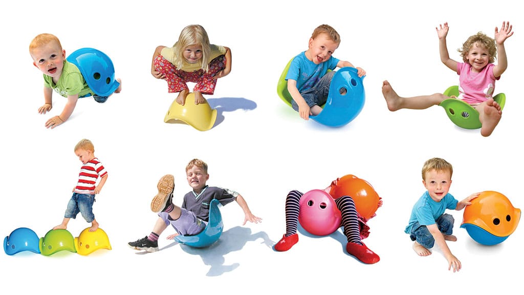 Schalenförmiges Spielzeug , das von Kindern auf jede erdenkliche Weise genutzt werden kann, wie sie es sich nur vorstellen können. Es fördert die grobmotorischen Fähigkeiten, regt zu aktiver Bewegung, fantasievollem Spiel, Kreativität, kritischem Denken und Problemlösungsfähigkeiten an.