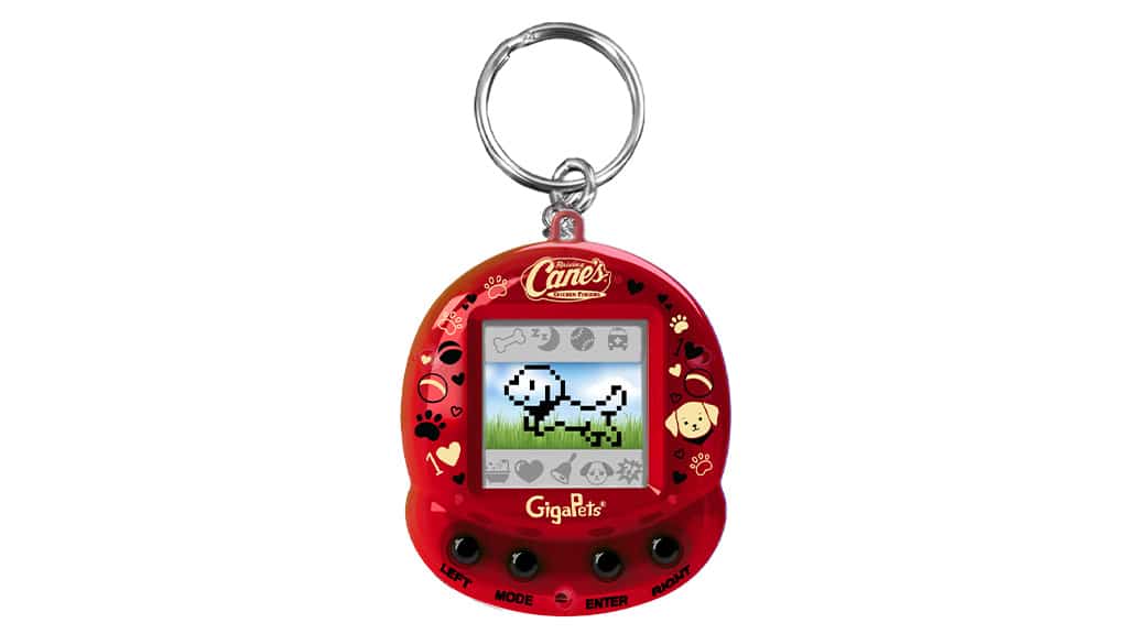 Mit der Wiederbelebung der virtuellen Haustierspiele der 1990er Jahre bietet dieses personalisierte GigaPet neue Spielerlebnisse, die von Raising Cane’s inspiriert wurden. Von der Verpackung bis zum Gerät selbst begegnen Kinder Restaurant-typischen Merkmalen wie dem „One Love“-Slogan, der markentypischen Farbpalette sowie dem liebenswerten Labrador Retriever, Cane III.