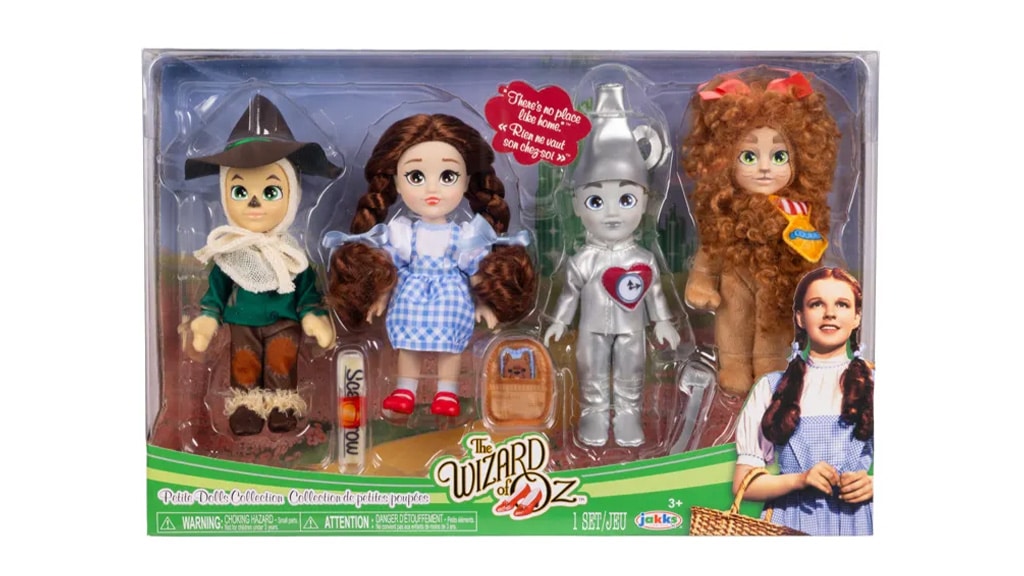 Mit dem Spielerisch Entdecker können Kinder ihre Lieblingsszenen aus dem Film von 1939 mit der Petite Dolls Kollektion nachspielen. Dieses Set enthält vier ikonische Charaktere aus dem Film: Dorothy , den Vogelscheuche , den Blechmann und den Feigen Löwen .