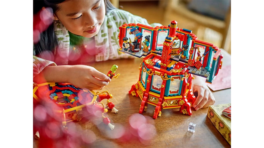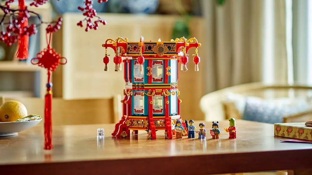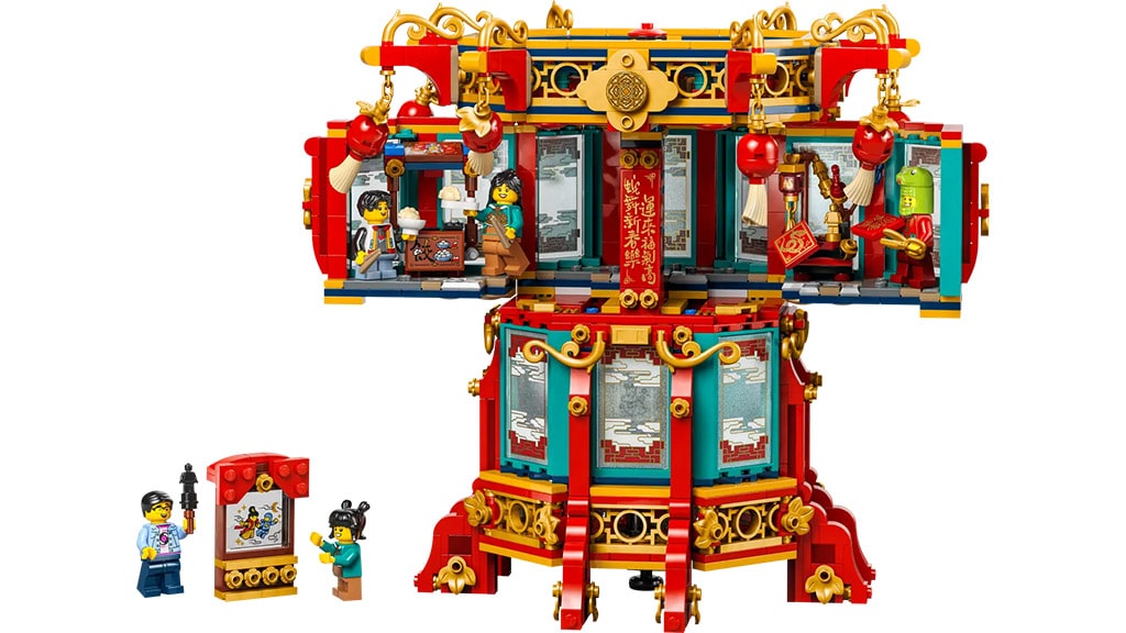 Die Trotting Lantern beginnt zu leuchten, wenn du die mittlere Säule drückst. Diese besondere Funktion ermöglicht es, dass die Laterne nicht nur als dekoratives Element dient, sondern auch eine praktische Beleuchtungslösung bietet. Das von der LEGO Gruppe entworfene Produkt bietet innovative Lösungen für kreative Baumeister, die die Kombination aus Spiel und Funktionalität lieben.Das LEGO Trotting Lantern Set erhellt den Weg in ein glückliches und leuchtendes neues Jahr. Nur ein Knopfdruck auf der drehbaren Mittelsäule, und die 1.295-teilige Laterne erwacht zum Leben! Die Kinder können die Laterne öffnen, um einen strahlenden Markt, fünf Minifiguren und ein Schattentheater zu entdecken, in dem sie verschiedene Lichteffekte erzeugen können. Die bunte Laterne ist mit traditionellen Bildern verziert, die die wichtige Kultur und Bräuche des Festes beleuchten.