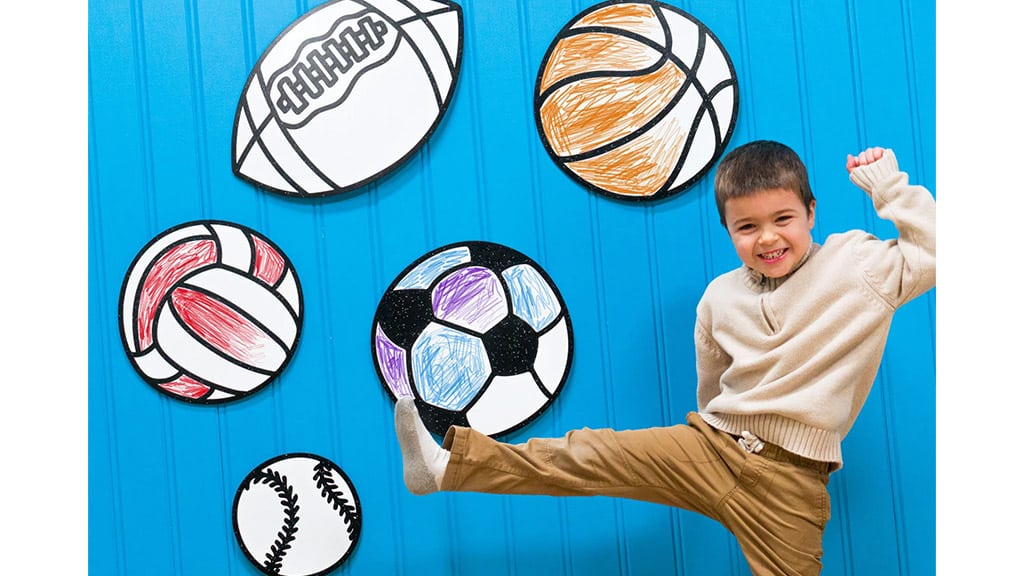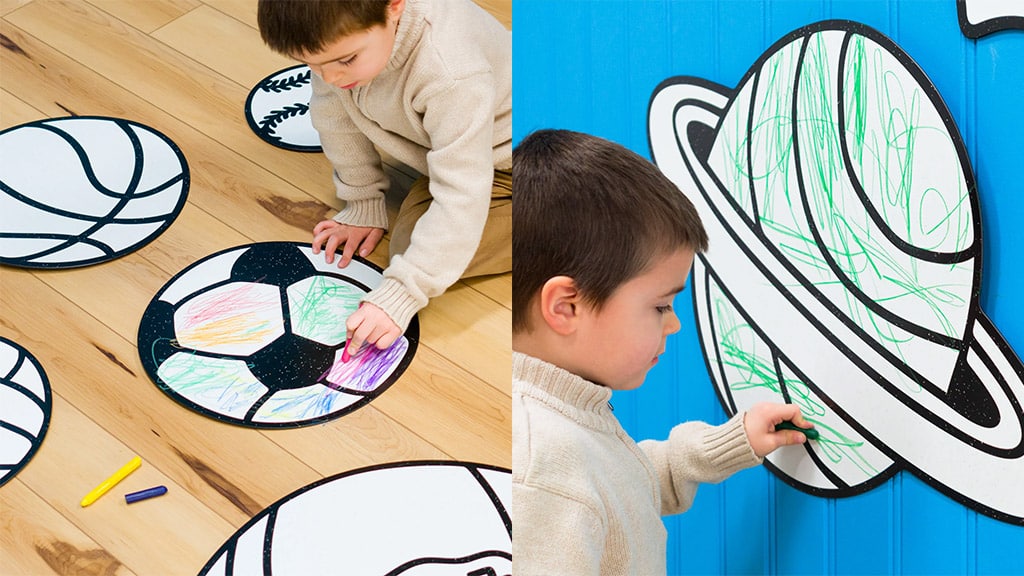 Kinder können verschiedene leere Wanddekorationen sammeln, die in zahlreichen Formen und Größen erhältlich sind, zum Beispiel Tiere, Meereslebewesen, Fahrzeuge, Buchstaben, Märchen, Natur, Spiele, Sportarten, Blumen und viele andere Themen. Jeder Poster lässt sich leicht an der Wand anbringen und wieder entfernen, damit die Kinder sie ausmalen können. Wenn die Kinder mit den abwischbaren DoodleFace-Wachsmalstiften zeichnen, können die Muster einfach abgewischt werden, sodass sie das Kunstwerk jederzeit neu beginnen können. Diese Möglichkeit fördert die Kreativität und die freie Selbstentfaltung der Kinder, während sie ihr Zimmer individuell gestalten können.