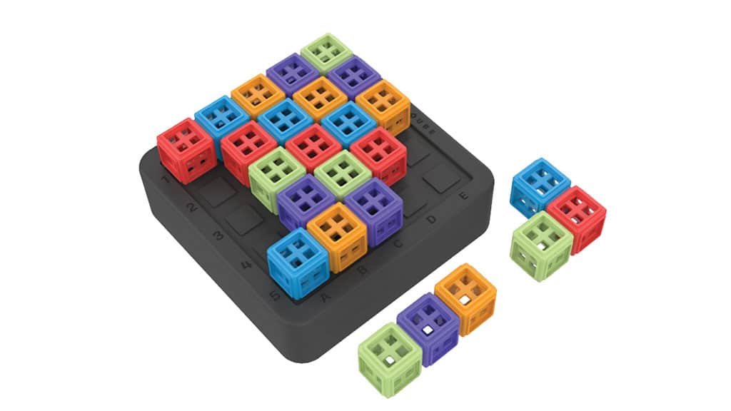Dieses farbenfrohe, mit Würfeln gefüllte Rätsel kombiniert die Spiele Kanoodle und Sudoku. Die Spieler gewinnen, wenn sie die Teile so in einer quadratischen Form anordnen, dass keine Farbe waagerecht oder senkrecht wiederholt wird. Diese Herausforderung fördert nicht nur das logische Denken, sondern stärkt auch das räumliche Vorstellungsvermögen und die Problemlösungsfähigkeit. Eine ideale Wahl für alle, die bunte, kreative und spannende Logikspiele lieben!