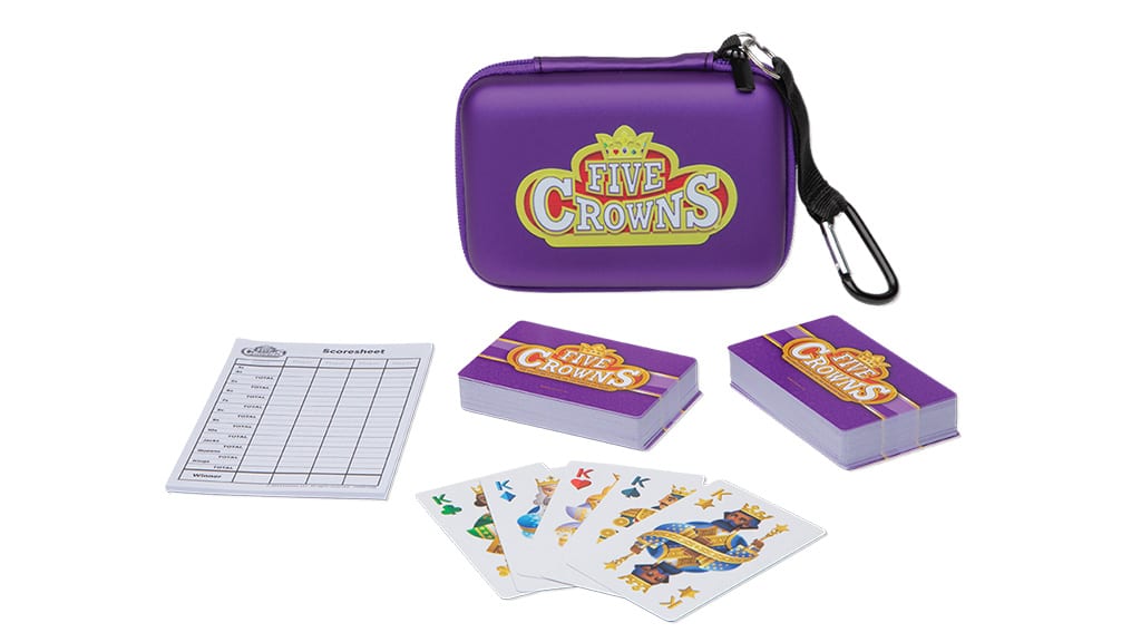 Dieses tragbare Kartenspiel enthält alles, was du für das Spiel Five Crowns brauchst, das eine einzigartige Variante des klassischen Rommé ist. Im Spiel gibt es rotierende Jokerkarten und eine fünfte Farbe, die Sterne, was das Spielerlebnis noch spannender macht. Bis zu sieben Spieler können am Spaß teilnehmen, und das Spiel endet erst, wenn auch die Könige zu Jokern werden! Dieses Spiel ist die perfekte Wahl für Familien- oder Freundestreffen, denn dank der einfachen Regeln ist es schnell erlernbar und bietet dennoch jede Menge Spannung und Herausforderungen für alle Altersgruppen.