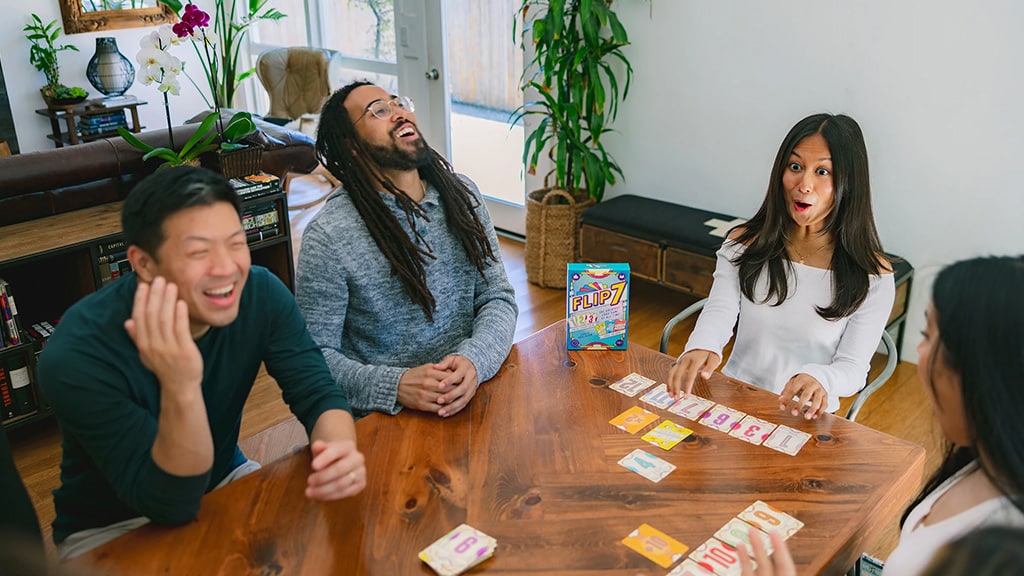 Die Spieler müssen Karten aufdecken und dabei vermeiden, dieselbe Zahl zweimal aufzudecken. Die Besonderheit des Spiels ist, dass es nur eine einzige 1er-Karte, zwei 2er-Karten, drei 3er-Karten und so weiter gibt. Außerdem befinden sich im Stapel spezielle Karten, die entweder Boni geben oder die Spieler am Vorankommen hindern können. Der Spieler, der als Erster 200 Punkte erreicht, gewinnt das Spiel. Flip 7 ist ein spannendes Brettspiel, das strategisches Denken erfordert, bei dem sowohl Glück als auch Gedächtnis eine wichtige Rolle spielen. Im Verlauf des Spiels zählt jede Entscheidung, denn ein falscher Zug kann dich den Sieg kosten!