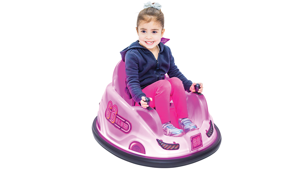 Kleinkinder und Vorschulkinder können sich mit den Joystick-Controllern um 360 Grad drehen, mit einer Geschwindigkeit von 1 mph. Drei verschiedene Lichtmodi sind ebenfalls verfügbar, die sowohl tagsüber als auch nachts leuchten.