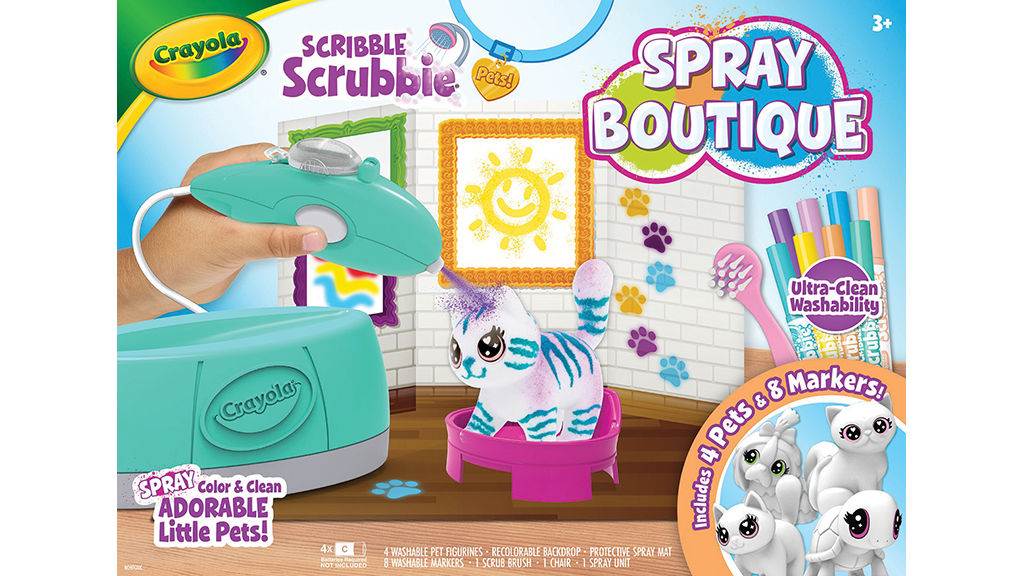 Platziere eines der vier kleinen Tiere auf den Salonstuhl, um ihr Aussehen mit den beigefügten acht waschbaren Filzstiften und dem Luftblasinstrument anzupassen. Wasche dann die kleinen Tiere mit Wasser ab, um neue Designs zu erstellen.