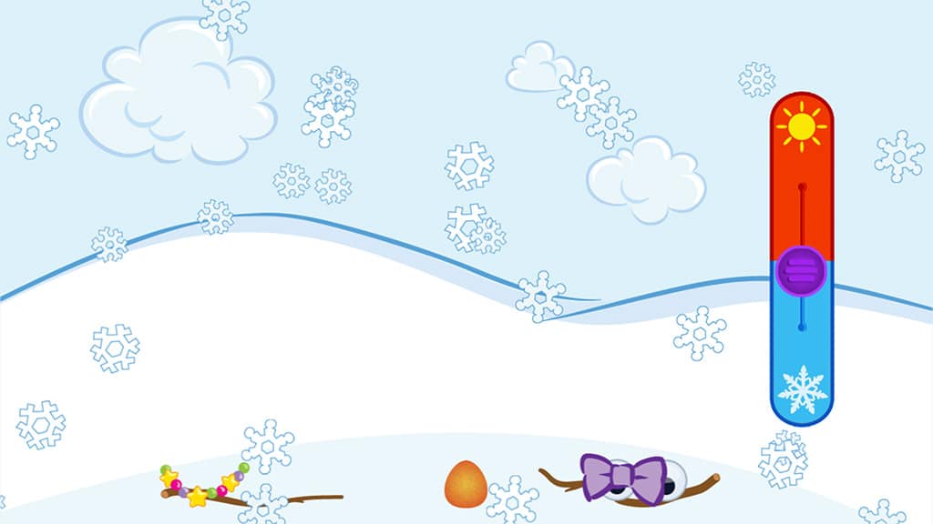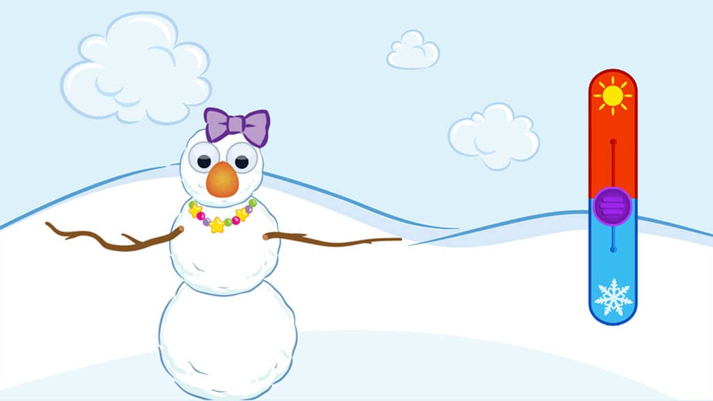 Snow Monster Maker ist ein charmantes Online-Spiel, das den Kleinen spielerisch die Veränderungen des Winterwetters erklärt. Die Kinder können die Temperatur hoch- und runterschieben, um zu sehen, wie der warme Frühlingsregen in eine verschneite Winterwunderwelt gefriert – und dann können sie ihr eigenes Schneemonster bauen, es mit Accessoires schmücken und zusehen, wie es in der Wärme schmilzt! Sie können mit verschiedenen Temperaturen und Kleidungsstücken experimentieren und entdecken, sodass dieses praktische STEM-Spiel die perfekte festliche Aktivität ist.