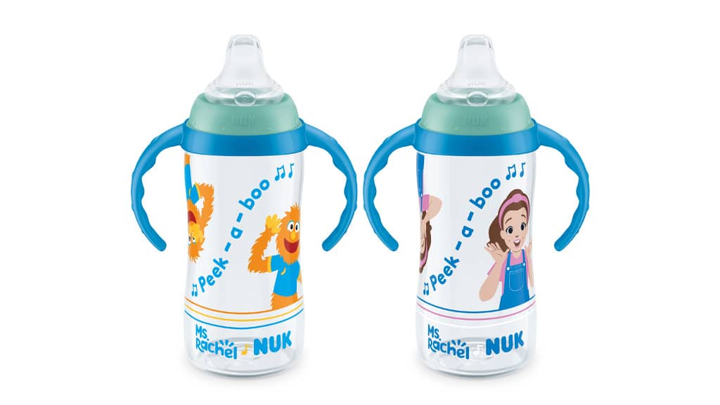 Beide Becher verfügen über einen tropffreien Ausguss, der für empfindliches Zahnfleisch und Zähne entwickelt wurde. Sie sind außerdem mit einem Luftventil ausgestattet, das hilft, die geschluckte Luftmenge zu reduzieren, sowie mit rutschfesten Griffen, die es kleinen Händen ermöglichen, sie leicht zu halten. Ein großer Vorteil für die Eltern ist, dass die BPA-freien Becher schnell und einfach in der Spülmaschine gereinigt werden können. Diese Becher sind nicht nur praktisch, sondern tragen auch zur Entwicklung der Feinmotorik bei, während sie für Kinder sicher und bequem sind.Familien können sich darauf freuen, dass nächstes Jahr ein Ms. Rachel-Teller-, Besteck- und Schüsselset von NUK erscheint. Bis dahin sind beide Becher bereits jetzt erhältlich und werden am Monatsende auch bei Amazon verfügbar sein. Der 10-Unzen-Lernbecher wird im November bei Walmart erhältlich sein. Diese Produkte sind perfekt für Familien mit Kleinkindern, denn sie sind nicht nur praktisch, sondern machen mit ihren fröhlichen, bunten Motiven die Mahlzeiten noch angenehmer. Die Ms. Rachel-Motive helfen dabei, dass Kinder ihre eigenen Geschirrteile gerne benutzen, während die Eltern sicher sein können, dass sie hochwertige, kinderfreundliche Produkte gewählt haben.Diese Kollektion ist kürzlich zusammen mit den neuesten Spielzeugen von Ms. Rachel und Spin Master erschienen, die sich hervorragend mit einem Glas frischem, kühlem Wasser oder Milch kombinieren lassen. Diese Spielzeuge sind nicht nur unterhaltsam, sondern fördern auch die Kreativität und Fantasie der Kinder, während sie der ganzen Familie eine angenehme Zeit bieten. Jedes Stück der Kollektion wurde sorgfältig entworfen, damit Kinder mit Freude das Spielen entdecken können, während sie gesunde Getränke genießen.