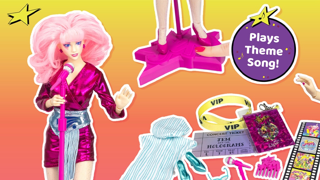 Rosa, glitzernd und Jem! Diese Popsängerin mit rosa Haaren trägt ein cooles Outfit und tolle Accessoires wie ein Mikrofon, ein Konzertticket, einen VIP-Pass und vieles mehr. Kinder können den Sockel der 12-Zoll-Puppe drücken, um das legendäre Titellied der Show zu hören. Darüber hinaus inspiriert Jems Charakter die Jugend nicht nur mit ihrem musikalischen Talent, sondern auch mit ihrem Stil und ihrem Selbstbewusstsein, sie selbst zu sein und ihre Träume zu verfolgen. Die Puppe ist das perfekte Geschenk für jeden musik- und modebegeisterten jungen Menschen, der Spaß und Kreativität liebt.Kinder ab 3 Jahren (und nostalgische Eltern) können bald imaginäre Konzerte mit der Hilfe von Jem und die Hologramme — Jem Klassische 12-Zoll-Modepuppe veranstalten. Jems Tournee beginnt am 1. Februar, exklusiv bei Walmart, und wird diesen Sommer noch in weiteren Geschäften erhältlich sein.