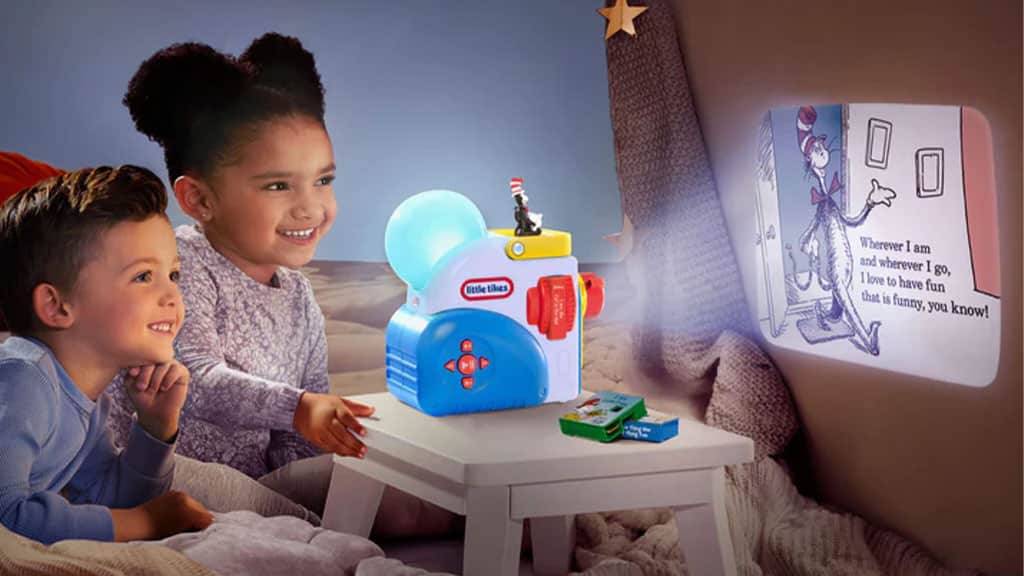 Egal, ob du grüne Eier und Schinken magst oder ob dein Name Sam ist, dieses Märchenerzählspiel kann der neue Favorit der Familie werden. Dieses Spiel ist nicht nur unterhaltsam, sondern fördert auch die Kreativität und das Gefühl der Zusammengehörigkeit. Kleine und große Spieler können es gleichermaßen genießen, während sie gemeinsam erschaffen und lachen. Entdeckt zusammen die magische Welt der Märchen und schafft eure eigenen Familientraditionen mit diesem besonderen Spiel!Die Familien haben den Little Tikes Diaprojektor bereits ins Herz geschlossen – das ist ein kindgerechter Projektor, der Märchenseiten an die Wand projiziert und dabei die Dialoge der Geschichte laut abspielt. Ab jetzt können Familien auch ihre liebsten Dr. Seuss-Geschichten in die Abendroutine einbauen! Dieses besondere Gerät ist nicht nur unterhaltsam, sondern fördert auch die Fantasie der Kinder und unterstützt das gemeinsame Erleben von Familienmomenten. Mit Hilfe der Story Dream Machine werden das Lesen und das Zuhören von Geschichten zu einem echten Erlebnis, das die Familienmitglieder verbindet und das Einschlafen erleichtert.