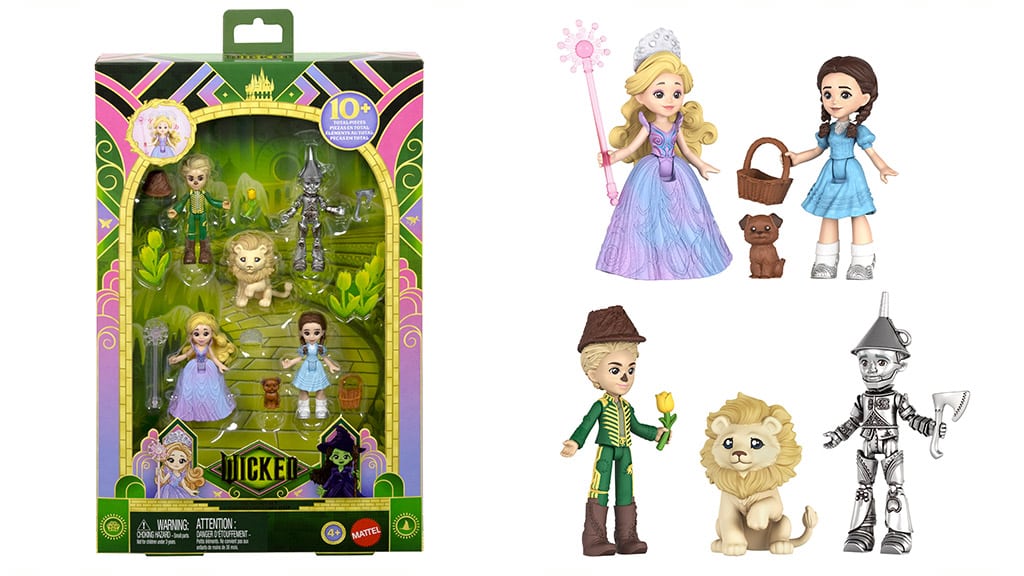 Die Kinder können jetzt ihre Lieblingscharaktere aus Wicked als Miniaturversionen in zwei verschiedenen Sets sammeln. Das Oz Geschichten-Set folgt Dorothys Abenteuer auf der Gelben Ziegelstraße und enthält Minifiguren wie Glinda, Dorothy Gale mit ihrem Hund, die Vogelscheuche, den Blechmann und den Löwen sowie bezauberndes Zubehör. Das Shiz Schule Schüler Multipack enthält bewegliche Figuren von Elphaba, Glinda, Nessarose, Fiyero und Boq, wie sie gemeinsam an der berühmten Shiz Akademie lernen. Diese Sets sind perfekt für Wicked-Fans, die die magischen Momente der Geschichte noch einmal erleben oder eigene Abenteuer mit den Charakteren erfinden möchten.Keine der vielen Spielesets in der Sammlung ist so strahlend (oder grün) wie das Emerald City Spieleset (29,99 Dollar). Dieses modulare Set enthält fünf spannende Spielbereiche, die von den echten Drehorten des Films inspiriert wurden und die Kinder nach Belieben umgestalten und entdecken können. Zusammen mit den Puppen von Elphaba und Glinda können die Kinder die Smaragdstadt erkunden, eine Aufführung in der Wizomania ansehen und sogar den großen Zauberer von Oz treffen. Das Set kommt mit 15 Zubehörteilen, sodass dieser magische Tag niemals endet – es bietet jedem Kind grenzenlose Möglichkeiten zum Spielen und zur Entfaltung der Fantasie.