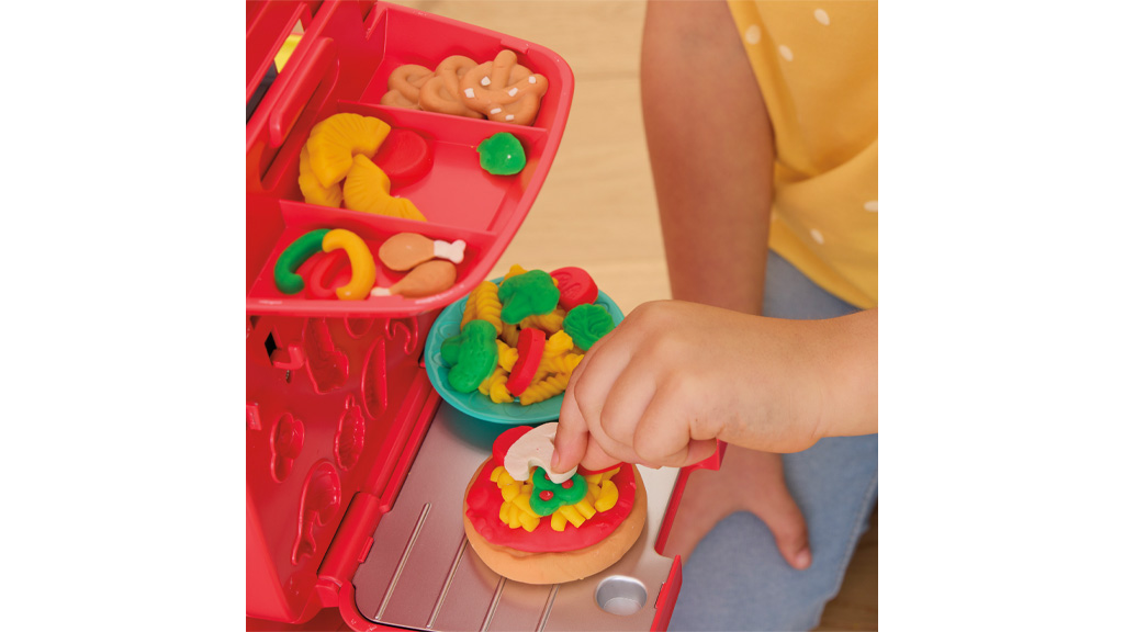 Vorschulkinder sind immer in Bewegung und bereit zu kreieren. Dieses Spielset kombiniert diese beiden Leidenschaften und presst sie zusammen wie fünf Farben in einer Play-Doh-Dose. An jeder Ecke des Rollers gibt es neue Möglichkeiten zum Kreieren. Eingebaute Formen für Pizzabeläge, ein drehender Pizzaofen und ein eingebauter Stauraum unter dem Sitz!