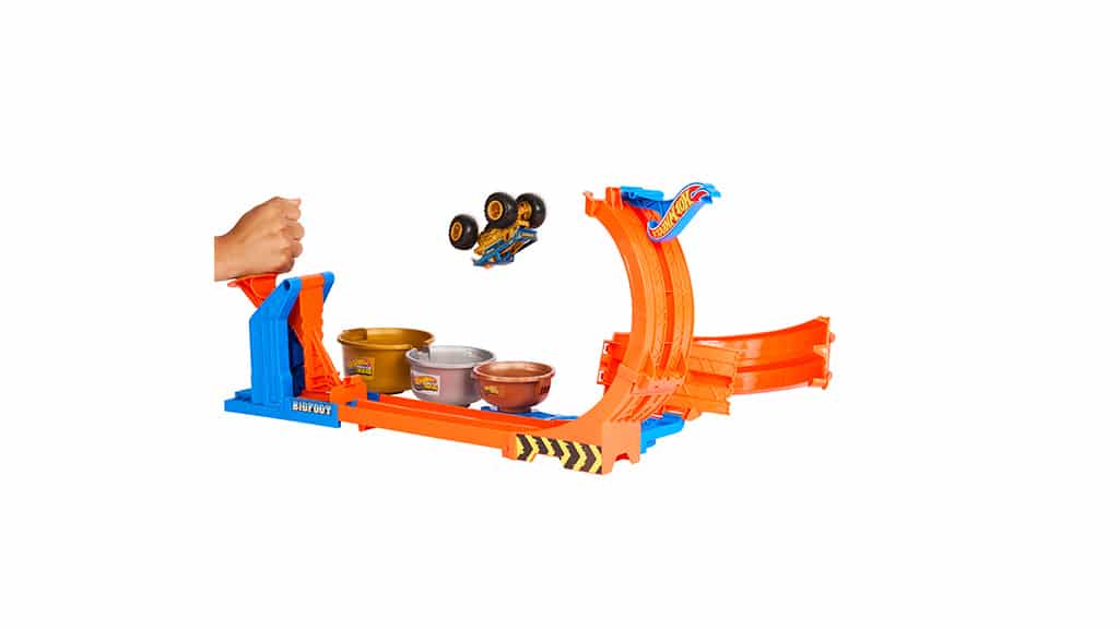 Der Wheels Monster Trucks Loop-and-Flip Trophy Challenge wird auch nächsten Monat verfügbar sein. Mit diesem Spiel können Kinder den Bigfoot durch die Schleife starten oder einen Rückwärtssalto ausführen, wenn sie ihn auseinandernehmen. Die Trophy Challenge funktioniert mit jedem 1:64 Maßstab LKW.Dieses Spiel ist nicht nur unterhaltsam, sondern fördert auch die Kreativität und Problemlösungsfähigkeiten der Kinder. Während sie verschiedene Tricks und Herausforderungen meistern, lernen die Kinder, wie man verschiedene Elemente für den Erfolg kombiniert. Die Trophy Challenge ist die ideale Wahl für alle kleinen Autoliebhaber, die Herausforderungen und spektakuläre Stunts lieben.