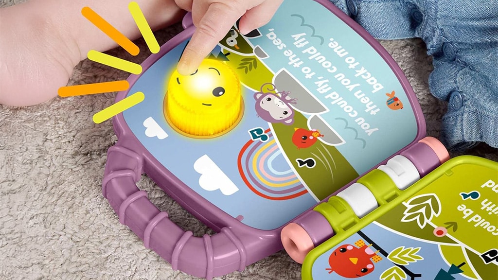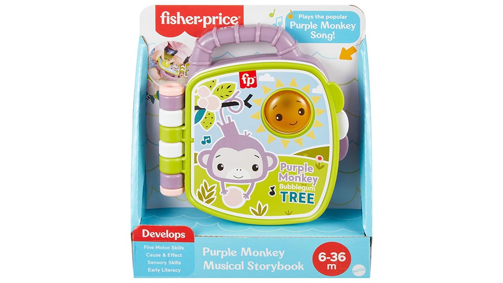 Dieses musikalische Spielbuch spielt das Lied „Lila Affe“, das aus dem Fisher-Price Deluxe Kick & Play Piano Gym bekannt ist. Durch Drücken des lächelnden Sonnenknopfs auf dem Cover startet die Musik und das Lichtspiel. Beim Umblättern jeder Seite ertönen neue Melodien und Geräusche, die einzigartig für die jeweilige Seite sind. Dieses Buch unterhält nicht nur, sondern fördert auch die Sinne und Fähigkeiten des Kindes, während es spielerisch die Welt der Musik und Klänge entdeckt.