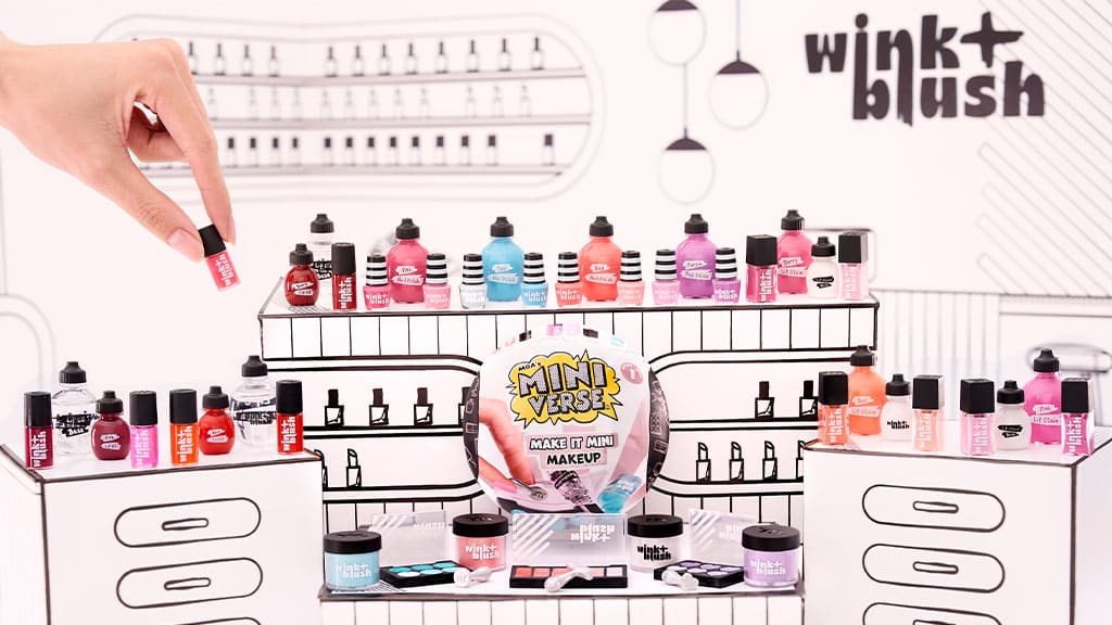 Die Make It Mini Makeup stellt eine fiktive Marke namens Wink Blush vor, inspiriert von traditionellen Kosmetikunternehmen. In jeder Kapsel finden Kinder eine DIY-Aktivität, mit der sie ihr eigenes Kosmetikprodukt herstellen können. Die Kollektion umfasst vier Lidschattenpaletten, drei Lippenflecken, drei Lippenöle und vier Nagellacke. Jede Kapsel enthält eine Anleitungskarte, die den Kindern zeigt, wie sie ihr Make-up herstellen können. Zum Beispiel enthalten die Lidschattenkapseln zwei farbige Puder und eine Ölgrundlage, die die Kinder in unterschiedlichen Mengen mischen können, um verschiedene Farbtöne zu kreieren, die dann in die Mini-Lidschattenpalette eingesetzt werden können.