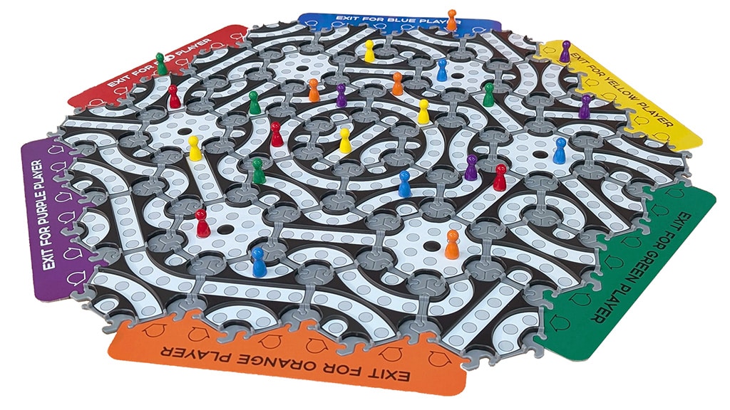 Die meisten Spiele in der Familiensammlung verfügen über statische Spielbretter, die nur auf eine Weise gespielt werden können. HexPath Detour Deluxe bietet neue Spielmöglichkeiten mit einem drehbaren Kachelmechanismus, der den Pfad des Brettes in jeder Runde verändert. Das Set enthält fünf einzigartige Spiele, darunter Detour, Solitaire, Mexican Standoff, Predator und Drag Race. Jedes Spiel fördert Problemlösung und strategisches Denken und kann in weniger als 15 Minuten gespielt werden. Kinder können auch eigene Spiele außerhalb der vorgegebenen erstellen.
