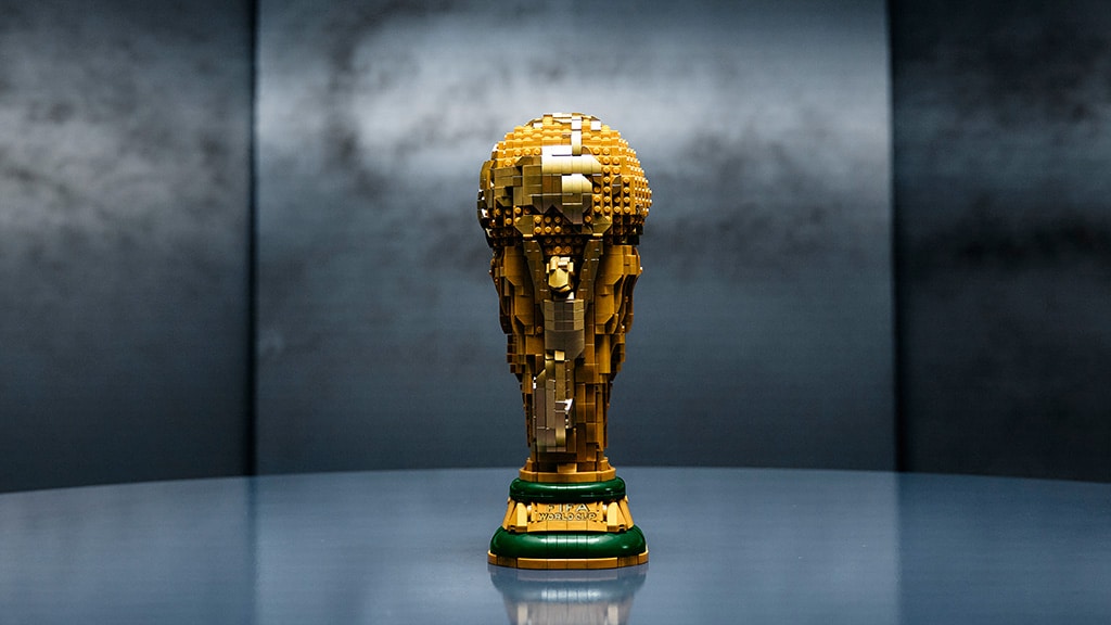 Die LEGO Gruppe bringt ein LEGO Editions-Set mit 2842 Teilen im Maßstab 1:1 auf den Markt, das eine lebensechte Nachbildung der ikonischen Trophäe darstellt. Dieses Bauset enthält auch eine versteckte Szene im oberen Kugelbereich. Mit einem kleinen Zug können Kinder die LEGO-Version des Logos des nächsten Turniers sowie eine gebrandete LEGO Minifigur entdecken, die eine verkleinerte Nachbildung der Trophäe in der Hand hält.