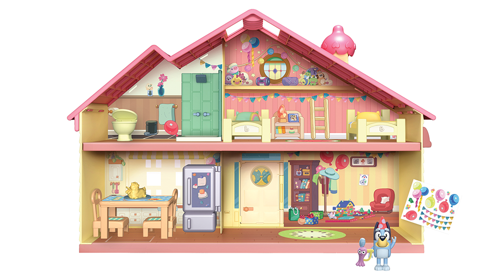Dieses aktualisierte, zweistöckige Spielset kommt mit 11 Zubehörteilen, mit denen du die Räume einrichten kannst, sowie mit Aufklebern, um eine festliche Stimmung für Blueys Geburtstag zu schaffen. Das Spielset enthält eine einzigartige Bluey-Figur mit Partyhut und eine neue Dusche für das Badezimmer. Die Küche ist mit einem Kühlschrank und einem Ofen ausgestattet, um das Spiel noch spannender zu machen. Die Kinder werden es lieben, ihre eigenen Geschichten zu erfinden und Blueys Abenteuer in diesem detailreichen Haus nachzuspielen.