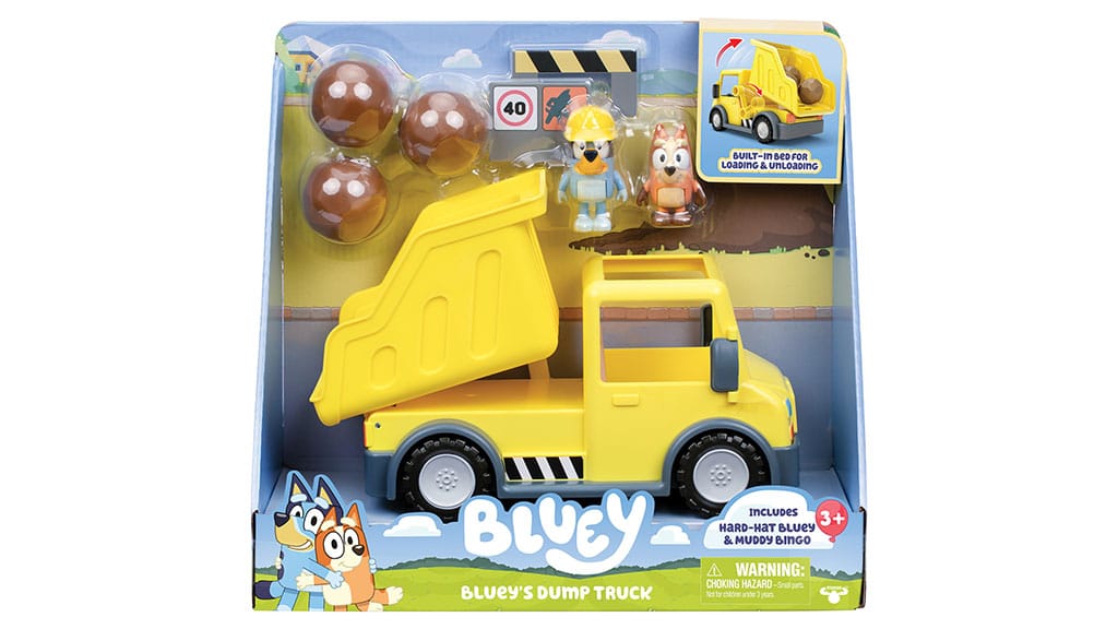 Dieses LKW-Spielset enthält eine eingebaute ausziehbare Leiter, auf der die Bingo-Figur oben platziert werden kann und die sich in alle Richtungen dreht; einen einziehbaren Feuerwehrschlauch; ein thematisches Aufkleberset; sowie die Figuren Feuerwehrmädchen Bingo, Bluey und Bob Bilby.