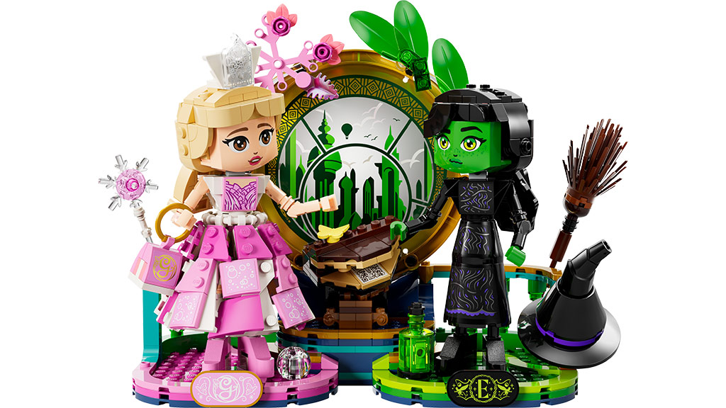Obwohl Glinda und Elphaba nicht unbedingt von Anfang an beste Freunde sind, werden die Kinder sicherlich beste Freunde mit dem LEGO Wicked Glinda & Elphaba College-Set, das aus 740 Teilen besteht und einen Koffer bildet, der beim Öffnen das Wohnheimzimmer der Mädchen enthüllt. Dieses Set wird mit einem QR-Code geliefert, der ein Musikvideo zum Lied "Popular" abspielt, in dem die Charaktere in LEGO-Form dargestellt werden.