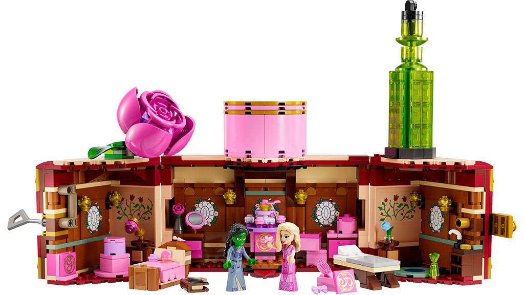 Obwohl Glinda und Elphaba am Anfang nicht unbedingt die besten Freunde sind, werden die Kinder mit dem LEGO Wicked Glinda & Elphaba College-Zimmer-Set, das aus 740 Teilen besteht und einen Koffer bildet, der beim Öffnen das College-Zimmer der Mädchen enthüllt, sicherlich beste Freunde werden. Dieses Set wird mit einem QR-Code geliefert, der ein Musikvideo abspielt.