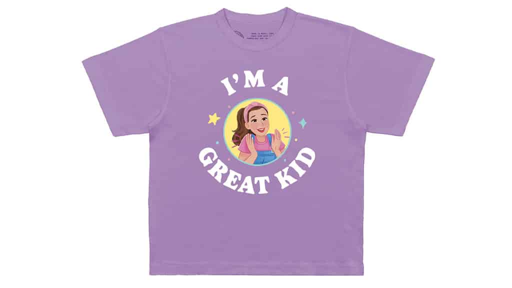 Zwei Baby-Bodys und drei Kinder-T-Shirts stehen für dein Kleines zur Verfügung. Diese Kleidungsstücke sind aus 100% Baumwolle gefertigt und enthalten Bilder der animierten Ms. Rachel (wie auch in ihrem neuen Bilderbuch zu sehen). Auf den Kleidungsstücken stehen Ausdrücke wie „Ich bin ein großartiges Kind“, „Schlafen. Snack. Ms. Rachel. Wiederholung“ und „Ms. Rachel Universität“. Die T-Shirts und Bodys sind mit bunten Symbolen verziert, wie zum Beispiel Sterne, Musiknoten, Punkte und vieles mehr!