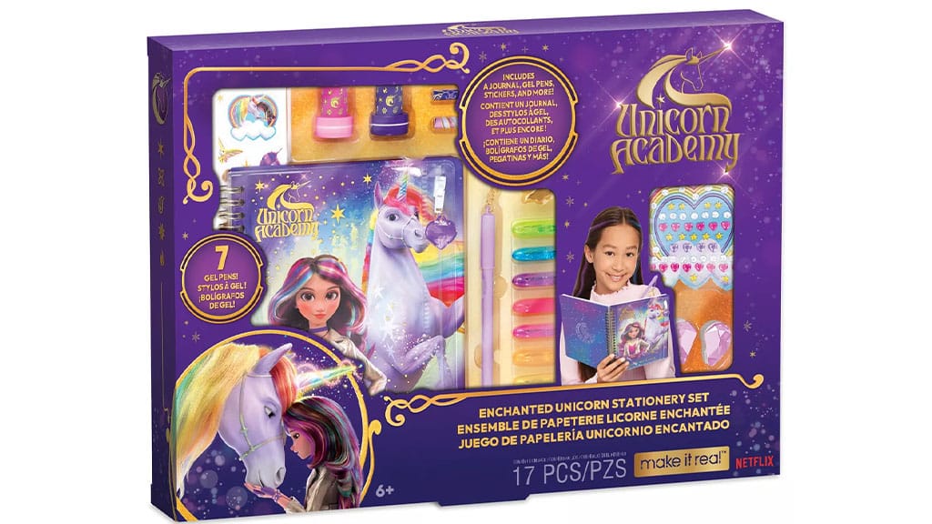 Ein drittes Spiel, die Unikornis Akademie Star Stables Fountain Nail Spa, wird im Herbst erhältlich sein. Dieses besondere Set bietet Kindern die Möglichkeit, ihre Nägel kreativ zu gestalten, während sie in die magische Welt der Unicorn Academy eintauchen. Das Spiel ist nicht nur unterhaltsam, sondern fördert auch die Fingerfertigkeit und Kreativität – somit ist es die perfekte Wahl für alle Einhorn-Fans.Familien können sich die folgenden neuen Produkte ansehen! Entdecken Sie das neueste Angebot, mit dem Sie Ihren Alltag noch komfortabler und angenehmer gestalten können. Verpassen Sie nicht die Gelegenheit, diese besonderen Neuheiten als Erste auszuprobieren!Die Fans der Fernsehserie „Unicorn Academy“ können jetzt mit ihren Lieblingsfiguren in diesem besonderen Schreibwarenset richtig kreativ sein. Dieses Set enthält alles, was junge Künstler und Träumer brauchen könnten: ein Tagebuch, Gelstifte sowie viele weitere unterhaltsame Accessoires, mit denen sie schreiben, gestalten und zeichnen können. Das Set ist die perfekte Wahl, wenn du deiner Fantasie freien Lauf lassen und in die magische Welt der „Unicorn Academy“ eintauchen möchtest!