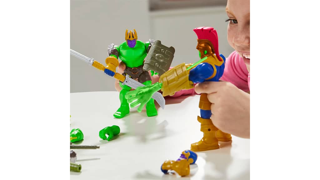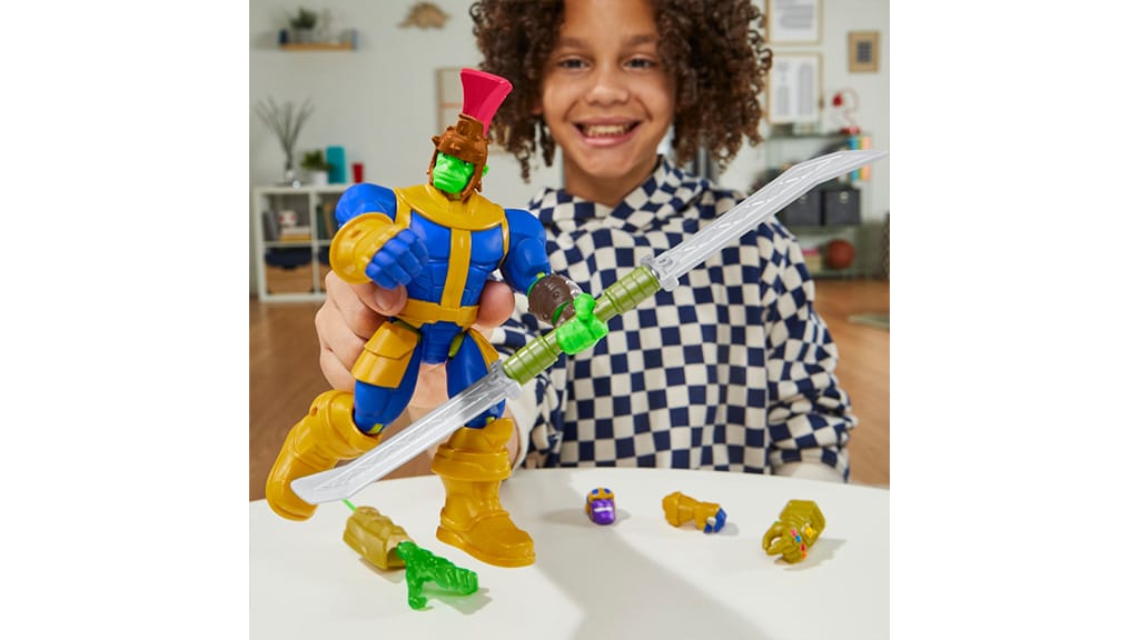Mit Hilfe der MixMashers können Kinder verschiedene Teile kombinieren, um neue Actionfiguren zu erstellen. Diese Deluxe-Figur enthält eine drehbare Thanos-Hand mit Stab, einen Thanos-Kopf und fünf Zubehörteile. Der Marvel Black Panther kommt mit einem lila Krafttritt-Teil und einem Iron Man Repulsor-Zubehör. Die MixMashers sind leicht zerlegbar und zusammenbaubar und umfassen die Welt von Marvel und Transformers, sodass der Fantasie der Kinder keine Grenzen gesetzt sind. Diese Spielzeuge sind nicht nur unterhaltsam, sondern fördern auch die Kreativität und Geschicklichkeit, während die Kinder ihre eigenen, einzigartigen Figuren erschaffen.