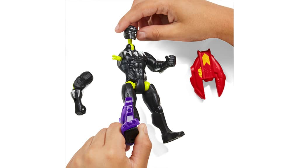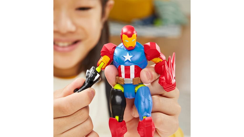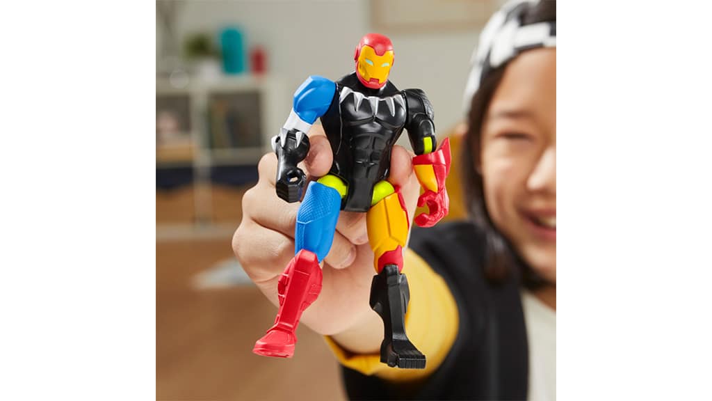 Kinder können mit Hilfe der MixMashers verschiedene Teile kombinieren, um neue Actionfiguren zu erstellen. Der Marvel "Black Panther" kommt mit einem lila Krafttritt-Teil und einem "Iron Man" Repulsor-Zubehör. Die MixMashers sind leicht auseinanderzunehmen und zusammenzusetzen und umfassen die Universen von Marvel, Transformers und Star Wars. Diese Spielzeuge fördern nicht nur die Kreativität, sondern ermutigen Kinder auch, Verbindungen zwischen den verschiedenen Universen zu entdecken, was das Spielerlebnis noch spannender macht.
