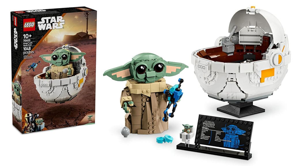 Für Kinder ab 10 Jahren und älter entworfen, enthält das LEGO Star Wars Grogu mit schwebendem Kinderwagen Bauset 1.048 Teile. Im Set befindet sich eine Miniatur-Grogu-Figur, ein Kinderwagen, in dem er ausgestellt werden kann, sowie ein Froschwesen, mit dem Grogu spielen oder das er probieren kann. Die Grogu-Figur ist vollständig beweglich, sodass Kinder nach Belieben seine Arme, Finger, Ohren und seinen Kopf bewegen können.