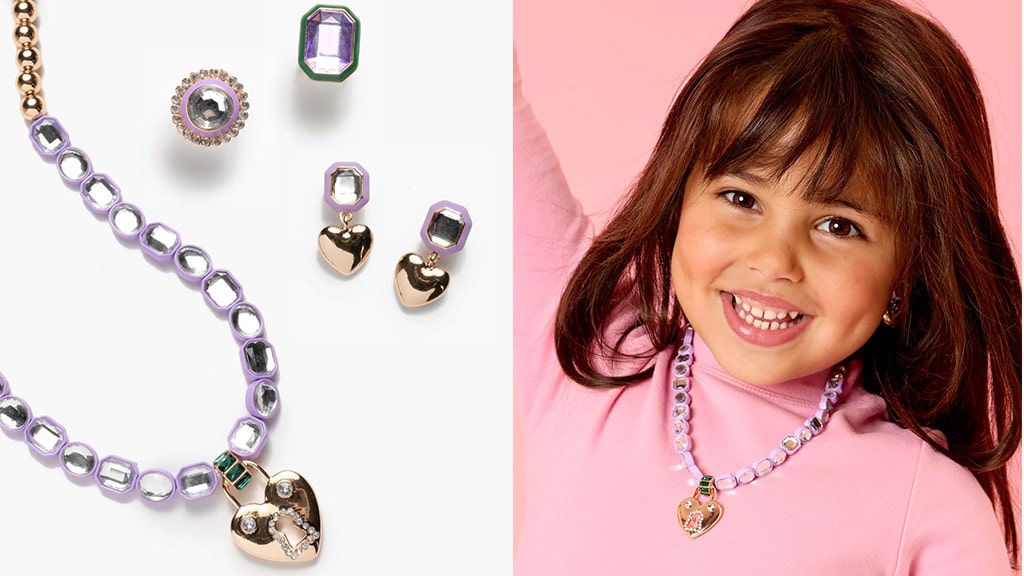 Jedes süße Schmuckset enthält Ringe, Clip-Ohrringe und Halsketten, die von Frühlingspastellfarben und Schmetterlingen inspiriert sind. Teil der Kollektion ist auch eine verspielte, lila Schwimmbrille, damit die Kinder stilvoll im Wasser schweben können. Mit bequemen, flexiblen Gummibändern und glitzernden Steinen wollen die Kinder nur in diesem Lavendelnebel bleiben!