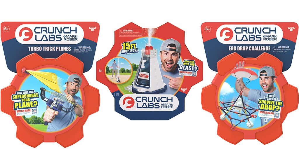 Die Kinder können sich eigenhändig mit naturwissenschaftlichen und technischen Kenntnissen vertraut machen, während sie verschiedene interaktive Experimente durchführen, wie zum Beispiel die Elefanten-Zahnpasta-Explosion, das Schleim-Labor, den Stunt-Fahrradwerfer, die Turbo-Trickflugzeuge sowie die klassische Eierwurf-Herausforderung. Jeder Bausatz enthält auch einen einzigartigen QR-Code, der zu exklusiven CrunchLabs-Videos führt, in denen die wissenschaftlichen und ingenieurtechnischen Prinzipien hinter dem jeweiligen Spielzeug ausführlich erklärt werden.