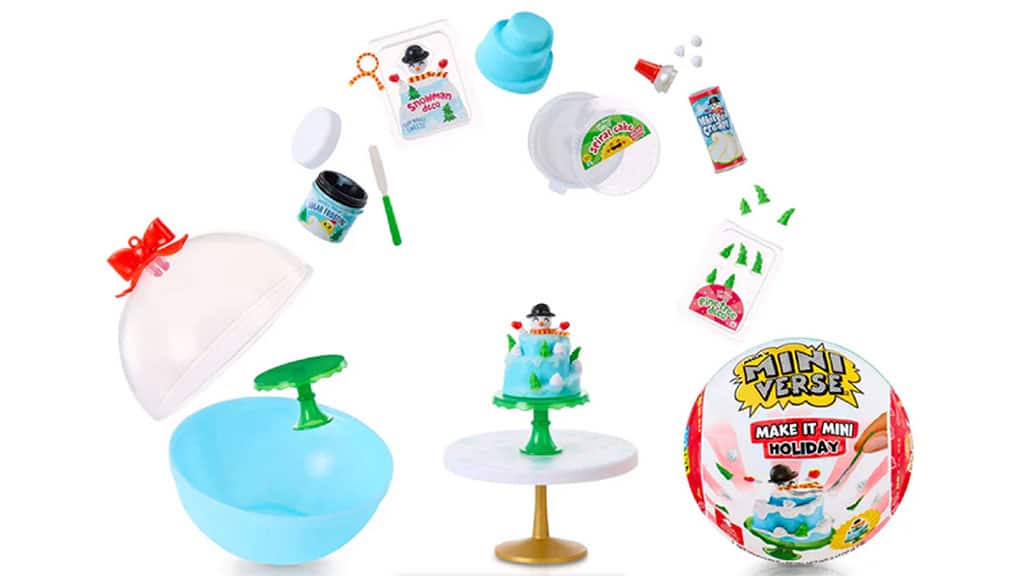 Das neueste Mitglied des MGA Miniverse, die Make It Mini Serie, bringt die (falschen) festlichen Lieblingsleckereien der Familie in Miniaturform! Jede Make It Mini Holiday Kapsel enthält Kunststoffzutaten, kleine Werkzeuge und Harz, sodass Kinder ihre eigenen kleinen Nachbildungen von festlichen Speisen selbst herstellen können.