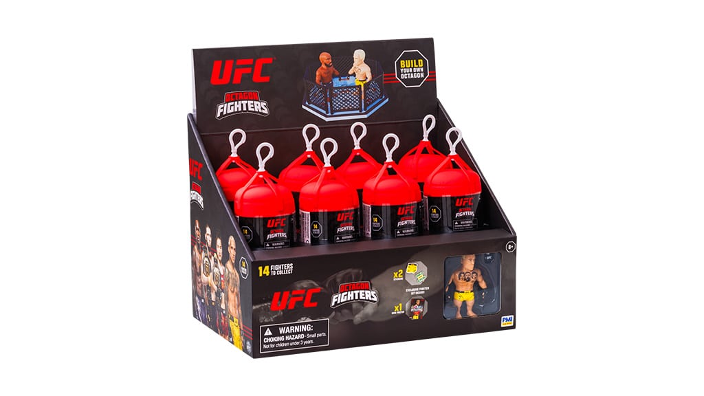Jede einzelne Überraschungskapsel enthält einen von 14 Mini-UFC-Kämpfern. Außerdem finden die Kinder Zubehör, einen Aufkleber, ein Mini-Poster sowie einen verbindbaren Sockel, mit dessen Hilfe sie das Oktagon bauen können. Dieses Spielzeug ist nicht nur unterhaltsam, sondern fördert auch die Kreativität und die Vorstellungskraft, während die Kinder ihre Lieblingskämpfer entdecken und ihre eigene UFC-Arena erschaffen können.