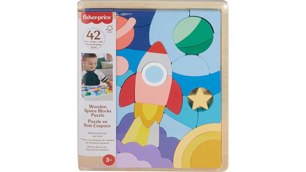 Das intergalaktische Vergnügen begibt sich auf neue Spielzeitabenteuer mit dem Fisher-Price Holz Weltraum Blöcke Puzzle. Die kleinen Astronauten können eine bunte Raketenszene erschaffen, indem sie die 42 Holzteile auf das mitgelieferte Tablett legen. Kinder ab 3 Jahren können wichtige Entwicklungskompetenzen stärken mit einem Puzzle, das für klassisches Zusammenbauen und offenes Spielen konzipiert wurde.Dieses Spiel ist nicht nur unterhaltsam, sondern fördert auch die Kreativität und Problemlösungsfähigkeiten der Kinder. Die bunten Elemente helfen bei der Farberkennung und der Entwicklung feinmotorischer Fähigkeiten, während die Kinder das Spiel genießen. Das Fisher-Price Holz Weltraum Blöcke Puzzle ist die perfekte Wahl für jeden kleinen Entdecker, der in die Geheimnisse des Weltraums eintauchen und dabei lernen möchte.