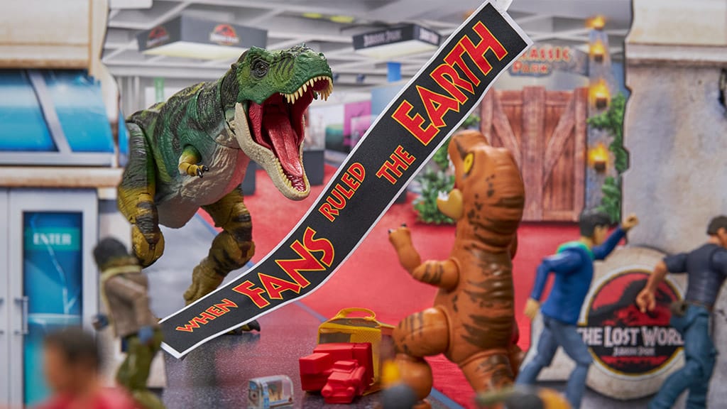 Der T. Rex stürmt mit diesem beeindruckenden Jurassic World-Spielset auf die San Diego Comic-Con. Dieses exklusive Set wurde von Mattel hergestellt und ist ein echtes Highlight für alle Fans. Die detailreiche Ausarbeitung, die beweglichen Teile und das filmgetreue Aussehen begeistern garantiert sowohl Sammler als auch Kinder. Dieses Spielset ist die perfekte Wahl für alle, die die Welt von Jurassic World lieben und ihre Sammlung um ein wirklich besonderes Stück erweitern möchten.Das Set enthält SDCC-exklusive Zubehörteile, darunter auch eine sammelbare Miniaturversion! Diese Sonderausgabe ist nur auf der San Diego Comic-Con erhältlich und gilt daher als echte Rarität unter den Fans. Jedes Teil des Pakets ist sorgfältig gestaltet, um deine Sammlung noch wertvoller zu machen. Quelle: MattelCrashing the Collection ist ein äußerst lustiges Jurassic World Actionfiguren-Set. Dieses besondere Set ist ausschließlich auf der SDCC (San Diego Comic-Con) erhältlich und zeigt „Buck“, das wilde Abenteuer des T. rex auf der Veranstaltung, wo er die Fans erschreckt und zwischendurch auch für ein prähistorisches Fotoshooting anhält. Im Set befinden sich eine T. rex und eine erschrockene Fan-Actionfigur sowie zahlreiche SDCC-Accessoires, zum Beispiel eine Geschenktasche, eine Flagge mit der Aufschrift „Als die Fans die Erde beherrschten“ und sogar eine Miniaturversion der Sammelfigur. Dieses Set ist nicht nur für Sammler, sondern für alle Jurassic World Fans eine echte Besonderheit, die garantiert ein Lächeln ins Gesicht zaubert und ein unvergessliches Erlebnis bietet, das die Atmosphäre der Ausstellung widerspiegelt.