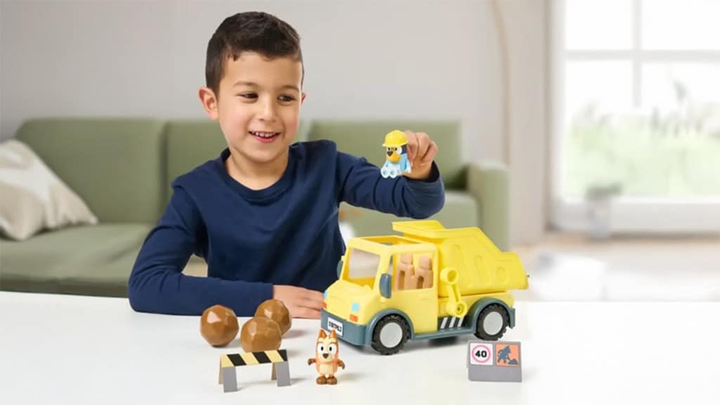 Der Bluey Kipper ist ein Spielzeugkipper von Moose Toys, inspiriert von dem animierten Fahrzeug aus den Bluey-Episoden, insbesondere den Folgen Curry Quest und Dirt. Dieses Spielzeug enthält die Figuren von Bluey und ihrem kleinen Bruder Bingo. Bluey ist bereit für die Arbeit mit einem Schutzhelm auf dem Kopf, während Bingo mit Schlamm bedeckt ist. Zum Spielset gehören außerdem drei Felsen, die auf die Ladefläche des Lastwagens geladen werden können, ein lustiges Aufkleberblatt zur Personalisierung, eine Straßensperre und ein Baustellenschild. Dieses Spielzeug ist nicht nur unterhaltsam, sondern fördert auch die Kreativität und Vorstellungskraft der Kinder, während sie im Rollenspiel neue Abenteuer mit Bluey und Bingo erleben können.