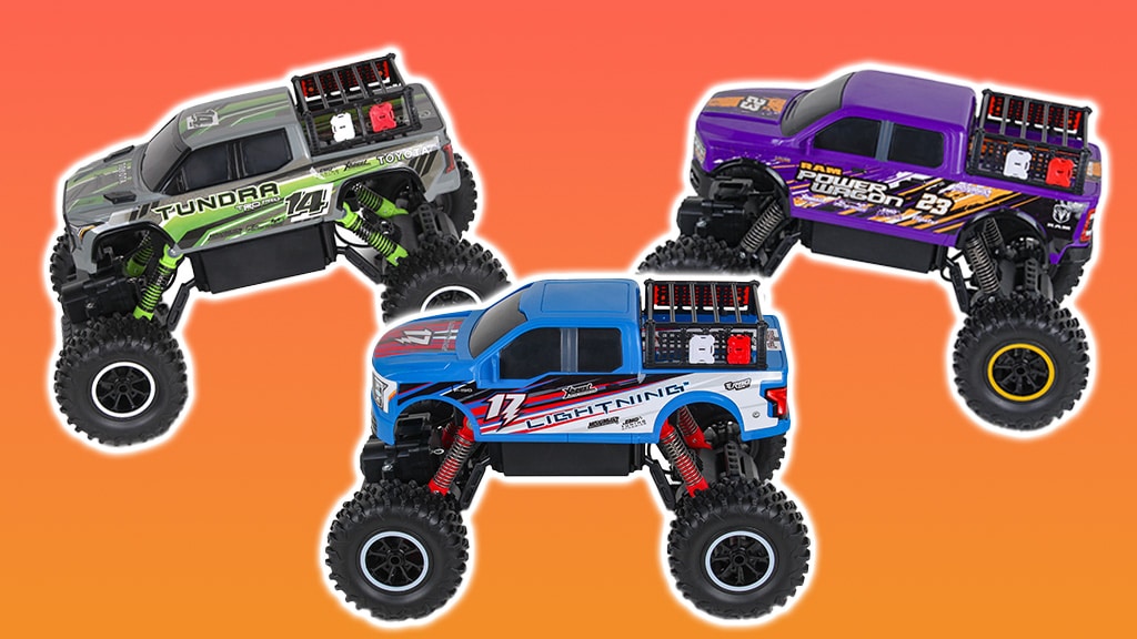Diese R/C-Fahrzeuge sind bereit, felsige Klippen, steile Hügel und jedes andere schwierige Gelände zu bezwingen! Kinder können ihre Begeisterung für Monstertrucks überallhin mitnehmen und beobachten, wie ihre Fahrzeuge bei jedem Abenteuer, das sie ihnen stellen, klettern, springen und Purzelbäume schlagen. In der Serie sind Fahrzeuge wie der Ford F-150 Lightning Rock Crawler, der Toyota Tundra Rock Crawler, der Ram 2500 Power Wagon Rock Crawler, der Ford Bronco Raptor Rock Crawler und der Toyota Tacoma Rock Crawler zu finden. Diese ferngesteuerten Autos sind nicht nur robust und stark, sondern bieten auch ein spannendes Erlebnis für alle Altersgruppen, während sie die Geschicklichkeit und die Problemlösungsfähigkeiten fördern. Sie sind die ideale Wahl für alle, die Abenteuer und Herausforderungen lieben!