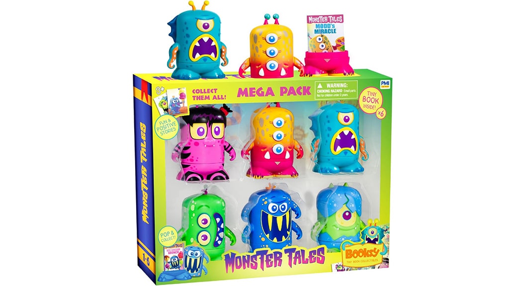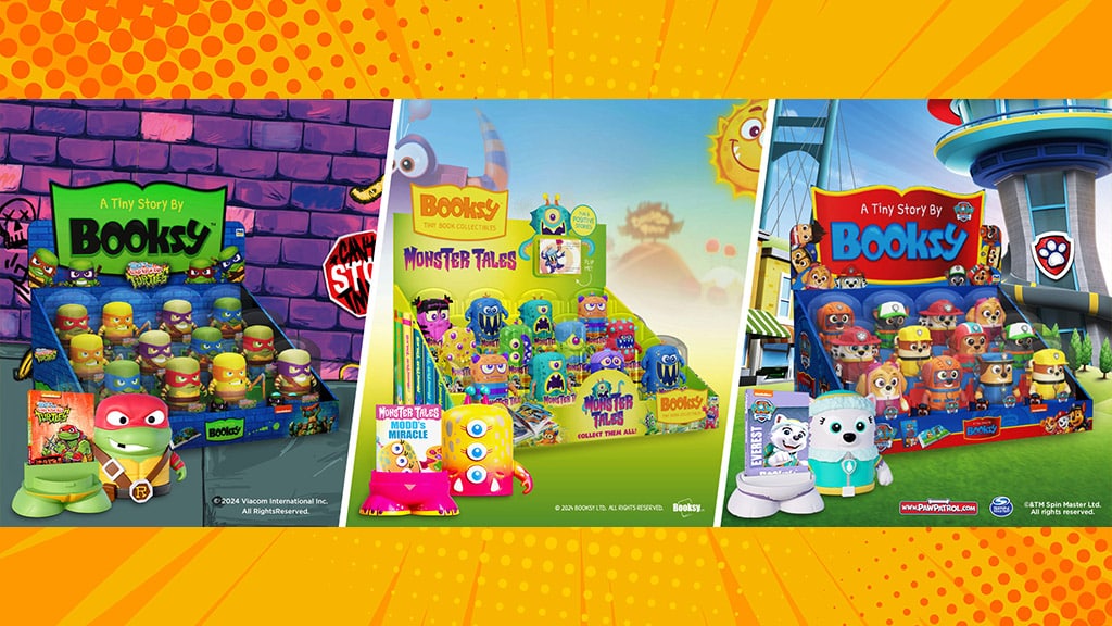 Booksy ist eine neue Serie von Mini-Buch-Sammelobjekten, die das Spielen mit imaginären Figuren mit dem Lesen und einzigartigen Ausstellungsmöglichkeiten kombiniert. Die Booksy-Figuren sind in verschiedenen Varianten erhältlich, innerhalb von drei verschiedenen Linien: Monster Tales, das ein Originalwerk von PMI Kids’ World ist; Tales of the Teenage Mutant Ninja Turtles, inspiriert von der Animationsserie; und Paw Patrol, inspiriert von den ikonischen Hunden von Spin Master. Jede Figur kommt in einer durchsichtigen Kuppel. Ein einfaches Drehen und Ziehen enthüllt das darin verborgene Miniaturbuch.