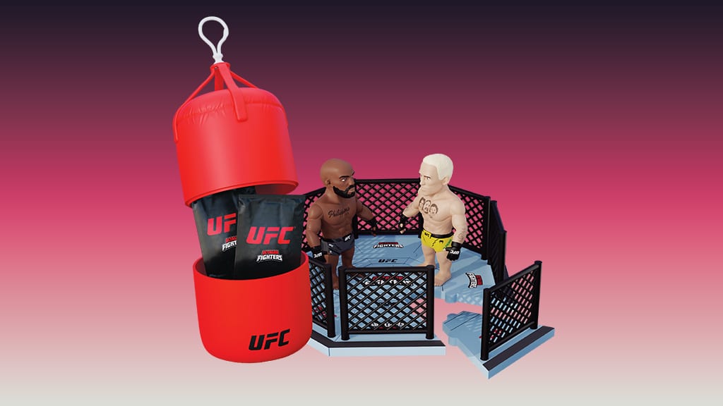 Jede Überraschungskapsel enthält einen von zwölf Mini-UFC-Kämpfern. Außerdem finden die Kinder Zubehör, einen Aufkleber, ein Mini-Poster sowie einen verbindbaren Sockel, mit dessen Hilfe sie das Oktagon bauen können. Diese Kapseln bieten ein spannendes Sammelerlebnis und ermöglichen es den Kindern, ihre eigene UFC-Arena zu erschaffen, während sie mit ihren Lieblingskämpfern spielen.