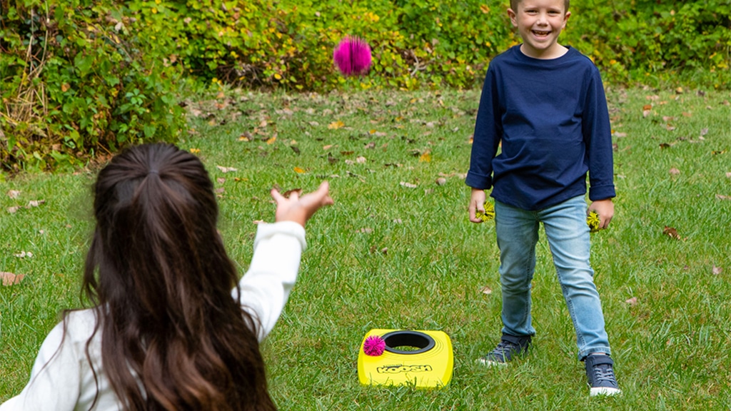 Dieses neue Sommerspiel von PlayMonster vereint zwei klassische Favoriten: Koosh und Cornhole. Da die Bohnensäcke durch sechs weiche, neonfarbene Koosh-Bälle ersetzt werden, ermöglicht diese Variante, dass Kinder sogar drinnen Koosh Cornhole spielen können. Das Spielbrett ist leicht und einfach aufzustellen, sodass der Spaß schnell beginnen kann. Dieses Spiel ist die perfekte Wahl für Familientreffen, Freundesrunden oder sogar für einen Regentag, wenn die Kinder in der Wohnung spielen möchten. Die bunten Koosh-Bälle sind nicht nur sicher, sondern machen das Spiel auch spannender, während sie die Geschicklichkeit und Koordination fördern.