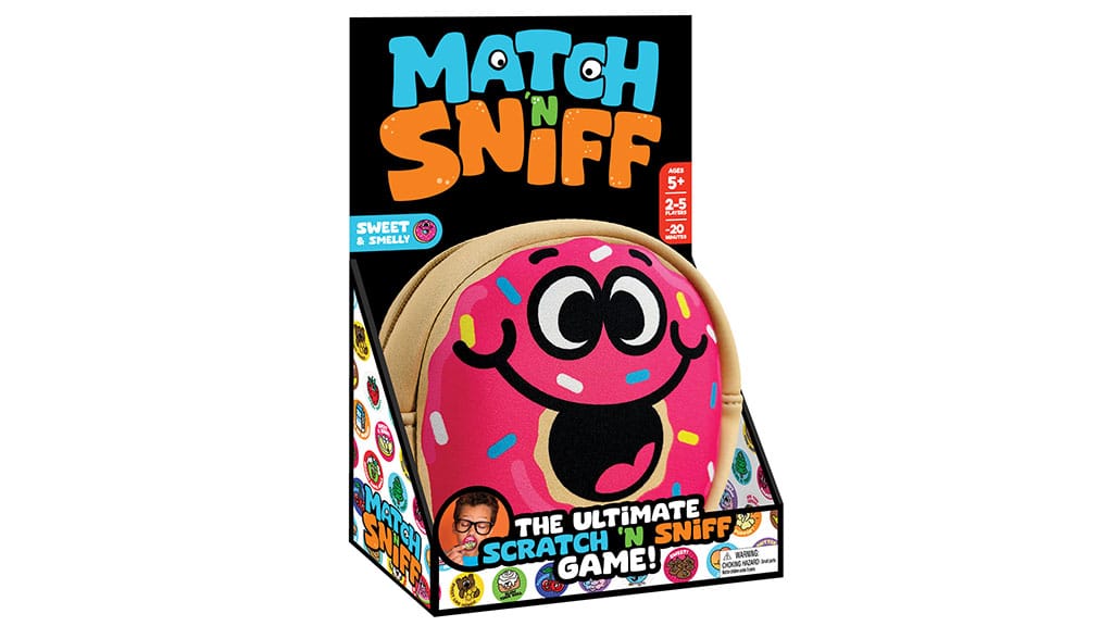 Schnuppere hinein in einen Abend voller neuer Spiele, bei dem süße Düfte – wie Schokolade, Banane, Kirsche und Ananas – für eine spannende Atmosphäre sorgen! Die Spieler müssen jedoch vorsichtig sein, denn nicht jeder Duft ist angenehm. Das Spiel bietet weitere Herausforderungen für die Mutigen, die bereit sind, auch einen stinkenden Geruch zu erkennen – im Austausch für besondere Belohnungen. Dieses Spiel garantiert ein unterhaltsames und unvergessliches Erlebnis für die ganze Familie!Das Spiel Match ‘N Sniff wurde speziell für Unterhaltung unterwegs entwickelt. Das Set enthält Rezeptkarten, Chips und Spielregeln, alles in einem tragbaren, donutförmigen Beutel. Ob für Familien-Spieleabende oder Wochenendausflüge, Match ‘N Sniff ist die perfekte Wahl für Familien, die fröhliche, gemeinsame Erlebnisse auch unterwegs suchen. Das Spiel ist nicht nur unterhaltsam, sondern stärkt auch den Familienzusammenhalt, fördert das Gedächtnis und die Sinne und lässt sich überallhin leicht mitnehmen.